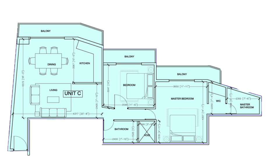 Living, Dining, Bed Rooms and other internal areas to be laid with porcelain homogenous glazed tiles.